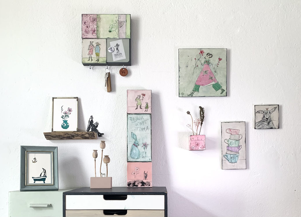 Hier gibt es handgefertigte Bilder, Karten und Wandobjekte –